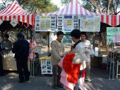在一片热闹的会场上,“法轮大法好”的醒目横幅吸引了许多目光,贴满各式法轮大法简介及法轮功学员在中国大陆无辜遭迫害真象资料的海报更成为民众驻足观看的焦点。摊位上飘扬着法轮功学员创作的乐声,让路过的人们感受到了法轮功学员们的祥和与平静。摊位中除了法轮大法简介外,也有资料、书签及光碟免费索取,并且还有揭露法轮功在中国大陆遭受迫害的真象影片播放。
