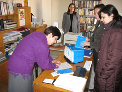 保加利亚学员向图书馆的行政人员说明了什么是法轮大法修炼、发生在中国的已经夺走1500多位无辜中国学员生命的残酷迫害,以及法轮功学员在保加利亚的洪法与揭露迫害讲真象活动。其中一位官员惊叹的说:“哇!你们做得很好呀。”