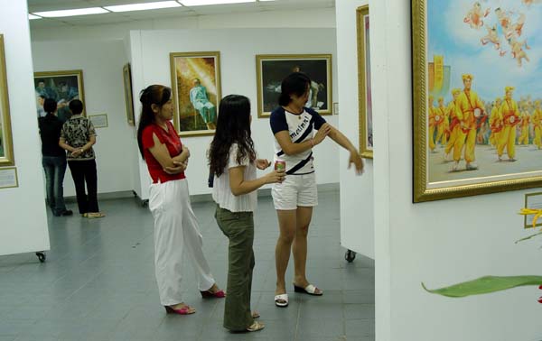 当时有两家报社的记者前来采访艺术协会的负责人,当询问对画展的感受时 Angel先生说,画展的每幅画都体现了“真善忍” ,非常好,是很值得一看的画展。他相信有更多的人会前来欣赏这难得一见的画展,除了对画家用画来表达心声的支持外,他对于迫害的严重性有了更深的认识。