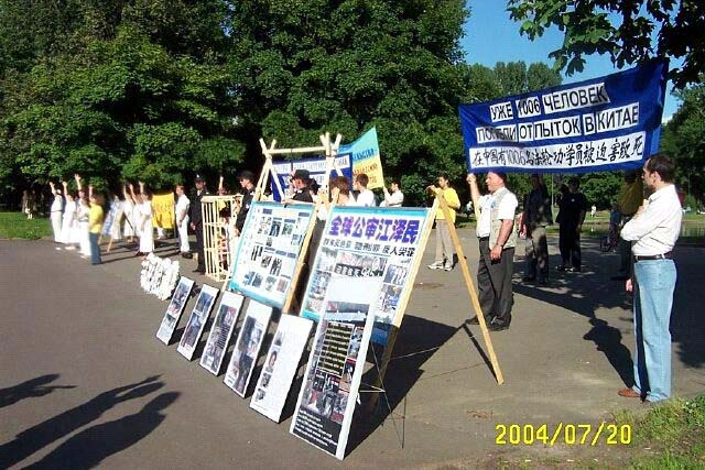 2004年7月20日,俄罗斯法轮功学员在中国驻俄罗斯莫斯科大使馆前和平请愿。