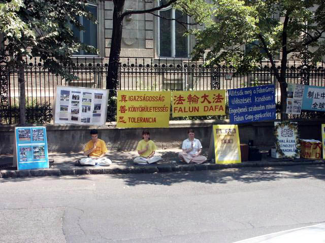 2004年7月20日前后,法轮功学员在匈牙利首都布达佩斯的中使馆前進行和平请愿。
