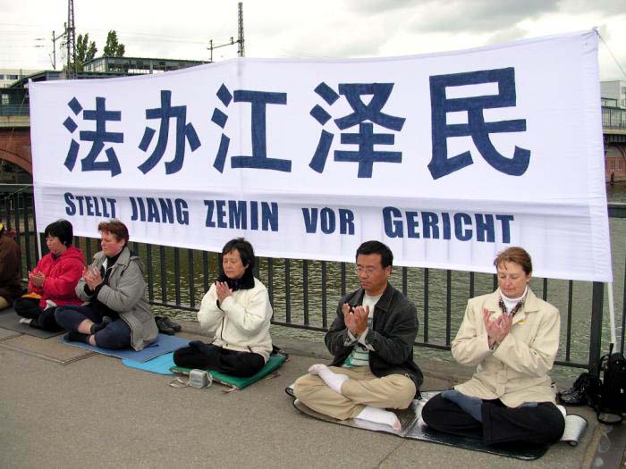 2004年5月27、28日,德国法轮功学员在柏林中国使馆前请愿,支持美国芝加哥的起诉江泽民案。