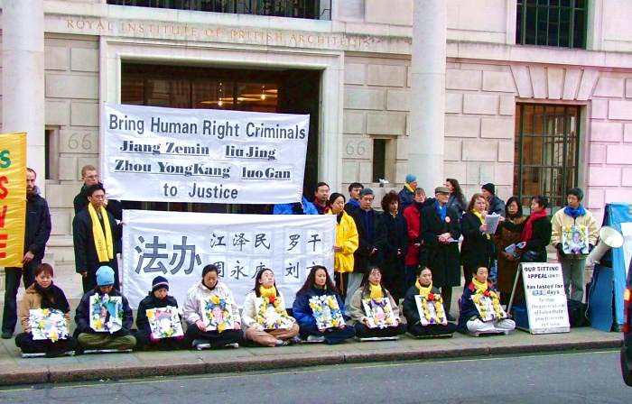 2004年2月英国法轮功学员在中国使领馆前请愿。