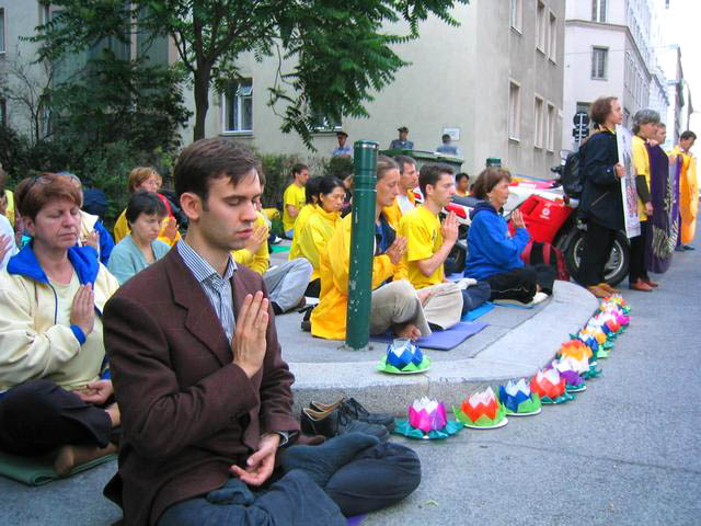 2004年6月17日,奥地利法轮功学员在维也纳的中国使馆前和平请愿。