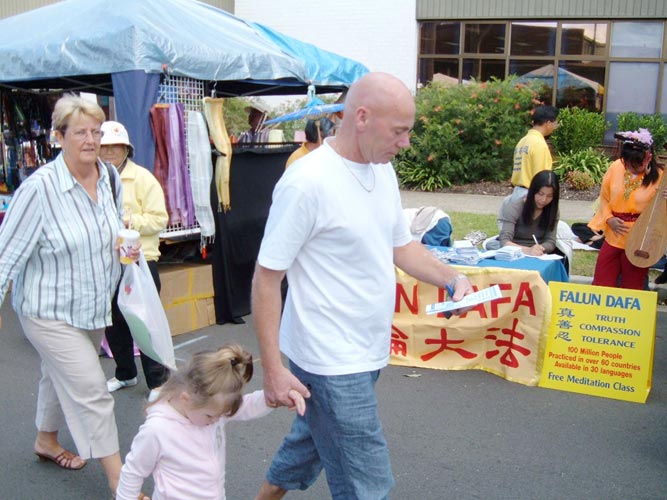 开始时,节日活动组织者帮学员寻找一个空闲的固定摊位时遇到一些困难,一位植物摊位摊主友好的为法轮功学员让出了她的其中一个摊位。