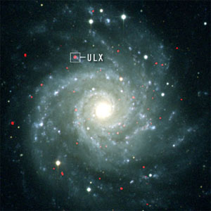 美国天文学家运用钱德勒X射线天文望远镜,在双鱼座的M74星系发现新一类黑洞;根据该黑洞X射线爆发持续时间和爆发周期推测,其质量大约相当于一万个太阳。
