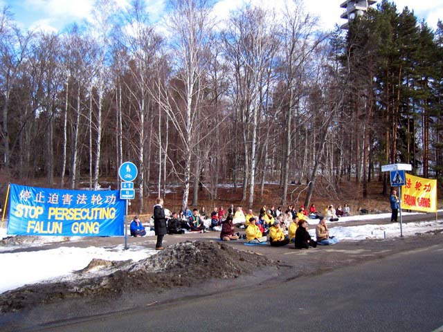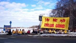 【明慧网2005年3月28日】2005年3月26日,近百名北欧法轮大法弟子利用自己假日,来到中国驻瑞典大使馆前,呼吁中国政府停止迫害法轮功学员。