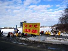 尽管是冰天雪地,法轮大法弟子们静静的在呼吁停止迫害。他们来到中国使领馆前不是为了他们自己,而是为了让更多的世人,包括使馆中的中国工作人员了解中共迫害法轮功的真象,尽早的结束这场以谎言为基础,以威逼利诱和酷刑为手段的迫害。