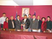 ![]() 中华会馆的侨领们与法轮功学员合影留念 | ![]() 中华会馆主席黄浩源向法轮功学员颁奖 | ![]() 奖牌 |