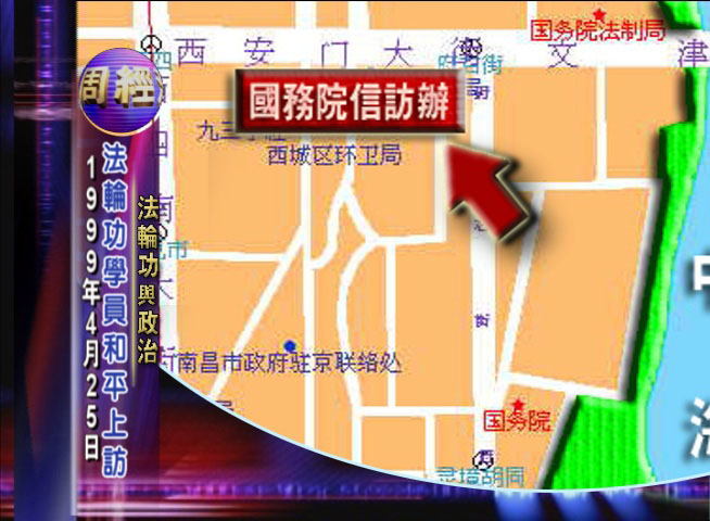 【旁白】1999年4月25日,一万名法轮功修炼者静悄悄的突然出现在中南海四周,他们是因为天津警方逮捕了法轮功人士,到国务院信访办集体上访。由于当时马上就是六四事件十周年,在这个敏感的时期敏感的地点,一下子出现如此大规模的请愿民众,立刻引起了国际社会的关注。虽然请愿人士秩序井然、态度平静,而且请愿在当天和平结束,但是法轮功信众这种召之即来、挥之即去的能量的确让中共当局感到不安,当时的领导人江泽民认为这对他权力构成威胁,3个月之后,江泽民下令,在全国范围内镇压法轮功。