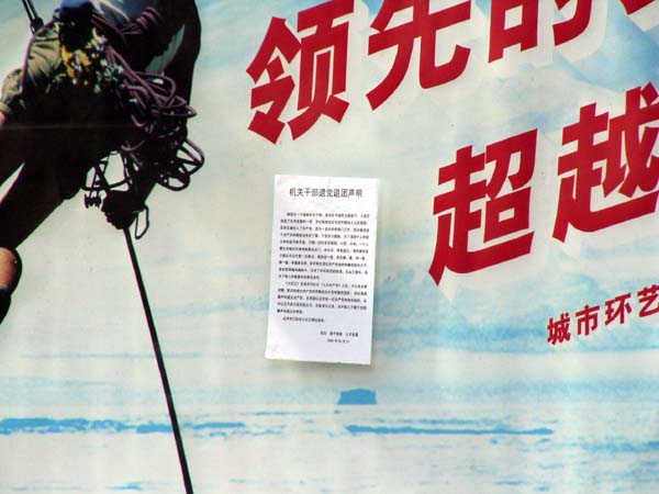 接下来,他不但自己退出中共的邪恶组织,还把《九评共产党》给了许多老师传看,许多教师看完了之后,最近他们学校有10多人纷纷写了“退党”、“退团”声明。