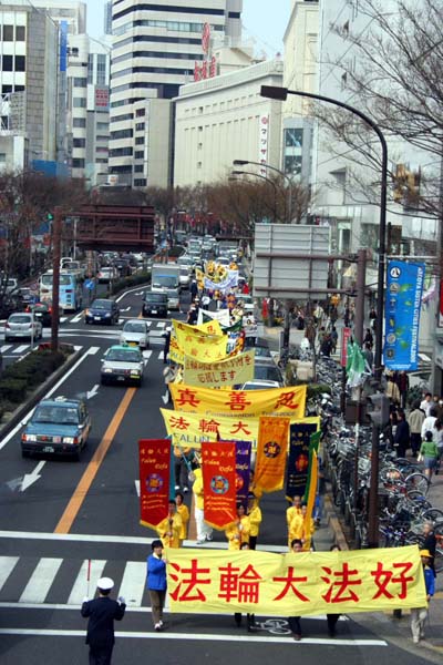 【明慧网2005年3月31日】在日本爱知万国博览会开幕期间,日本法轮功学员在名古屋进行了洪法活动。
