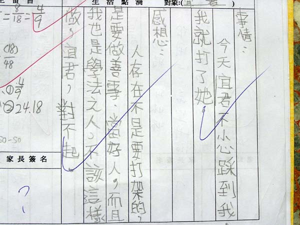 感想:人存在不是要打架的,是要做善事、当好人,而且我也是学法之人,不该这样做,蔡同学,真对不起。