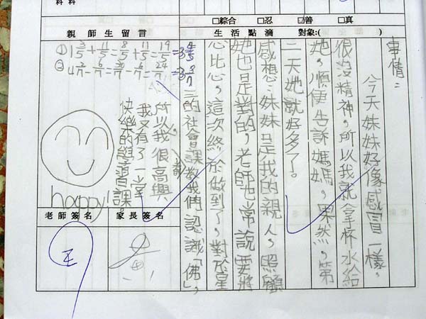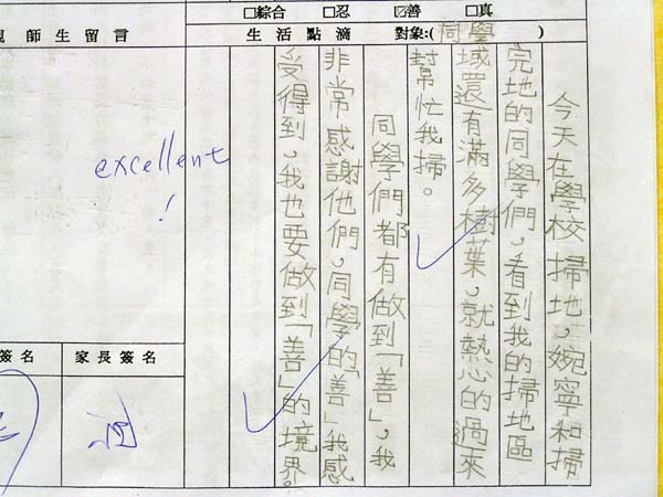 今天在英语补习班时,我先拿到作业,后来有同学把我拿的作业抢过去,我本来要骂他,后来我又忍着,而且老师有跟我们说,如果有对你们怎么样,我们都要忍着,千万不要打回去或骂回去,反而这样让我加德。我做了一件事叫“忍”。