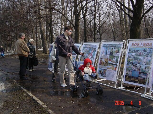 ![]() 小弟子索尼亚和弟弟萨沙要求停止迫害法轮功 | ![]() 学员代表用扩音器在中使馆前发表了集会抗议声明 |