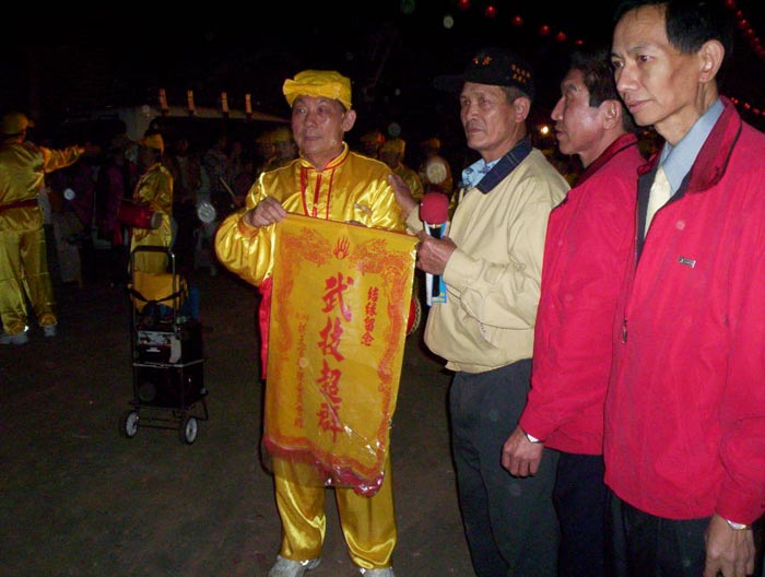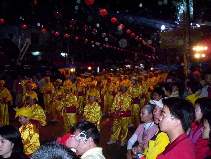 驻足观看的居民都说,“主办单位今年怎么有办法请到如此庞大腰鼓队伍,真是太美好了!太震撼!”当队伍来到拱天宫庙前,法轮功学员齐唰唰的表演“鼓乐神威”,动作整齐划一,获得满堂彩,活动主办者更是笑得合不拢嘴,一再感谢法轮功腰鼓队的到来,也希望下次能有机会再邀请法轮功学员参加盛会。