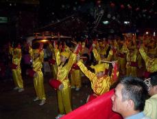 后记:苗栗成立腰鼓队四个月左右,参与的法轮功学员约八十位,从十岁至七十几岁的学员都有。刚开始时先学基本动作然后各自回去练习,星期假日再集体练习。值得一提的是较年长的法轮功学员对音乐节奏毫无概念,可说是一大考验,其中一位年长的苏先生,基本动作一直做不来,音乐节奏更是抓不到,练得灰头土脸想退出。后来学员透过电话鼓舞,自许比别人花多一倍的时间一定可以勤能补拙,现在他打腰鼓的基本动作是最扎实一位,而且每场他都不缺席,精神真是可嘉!法轮功学员表示,之所以会克服各种困难练习打腰鼓,是希望通过活动让更多人了解法轮大法,并从中受益。