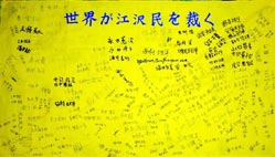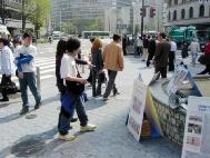 在听到有关呼吁支持诉江及停止迫害法轮功的有声解说以及看到展示大陆法轮功学员遭受酷刑的展板后,有不少人伫足观看。有的主动上来索要传单。有的主动上来在一块支持审江签名的黄布上签上了自己的名字。有不少路人表示,早已了解了发生在中国的这场迫害。他们表示对中共非常反感。更有一位老太太主动上前要了一厚叠传单,表示要将其带给自己的亲朋好友。还有不少人表示,过去受到中共江氏集团散布到的海外的谎言误导,对法轮功有一些非正面的看法,今天看了真象资料及听了学员的解说之后,才恍然大悟,同时他们也对学员把真象告诉了他们表示感谢。