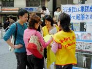 活动参加者在讲演结束以后,進行了征集支持诉江签名的活动,同时向路人发放了呼吁支持审江等内容的传单。