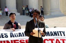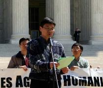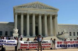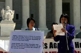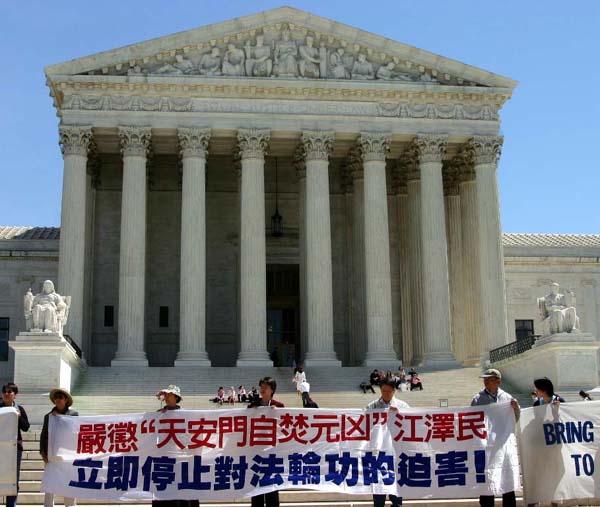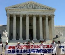 在美最高法院前集会 法轮功学员揭露江氏罪行(图)