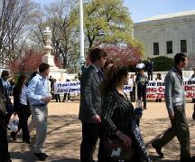 【明慧网2005年4月15日】(明慧记者李静菲华盛顿报导)部份华盛顿地区法轮功学员4月13日中午在美国最高法院前集会,揭露江泽民在过去的六年中对法轮功学员犯下的罪行,敦促最高法院审理起诉江泽民的案件。