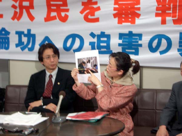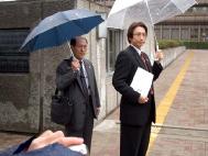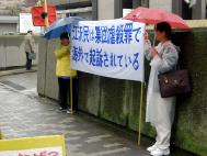 上午在日本大阪地方法院门口摆出展板并且打出横幅。
