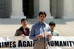 4月13日,美国首都华盛顿的法轮功学员在最高法院前集会,要求把迫害法轮功的元凶江泽民绳之以法。