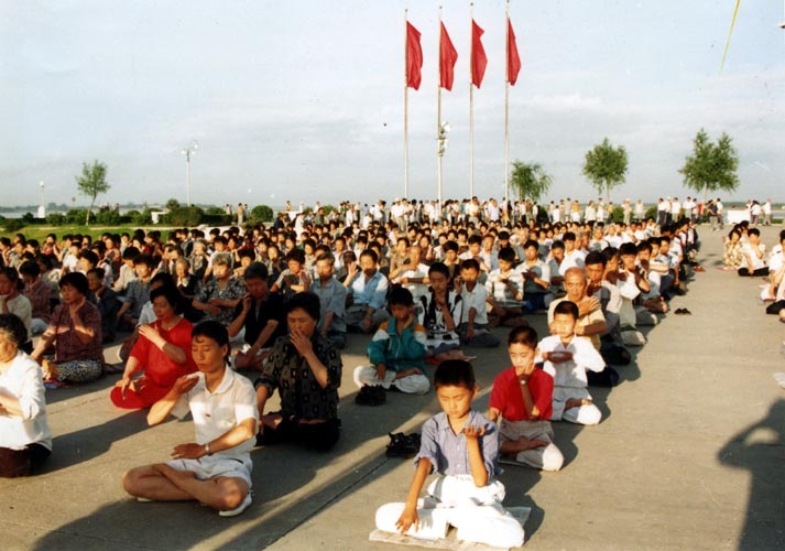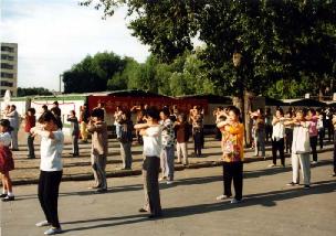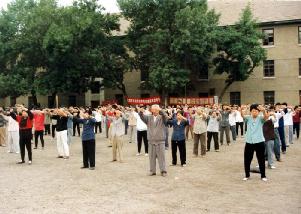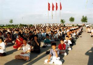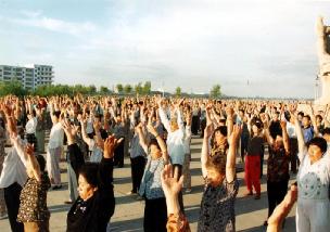图片:99年以前长春大法小弟子集体炼功的场面