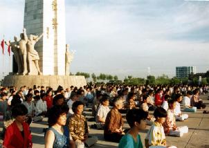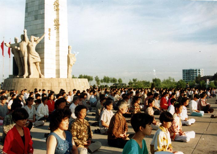 图片:99年前,长春大法弟子在文化广场集体炼功