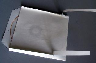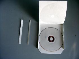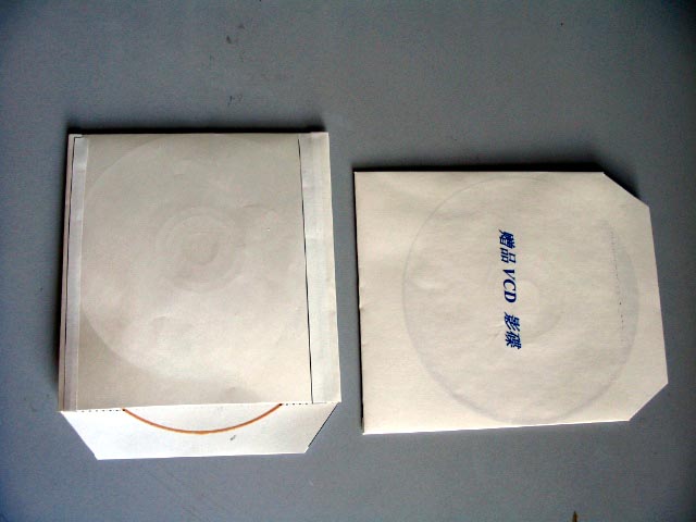 用刚才剪下的两条边条,将不干胶层揭下用于粘光盘袋两侧的封口