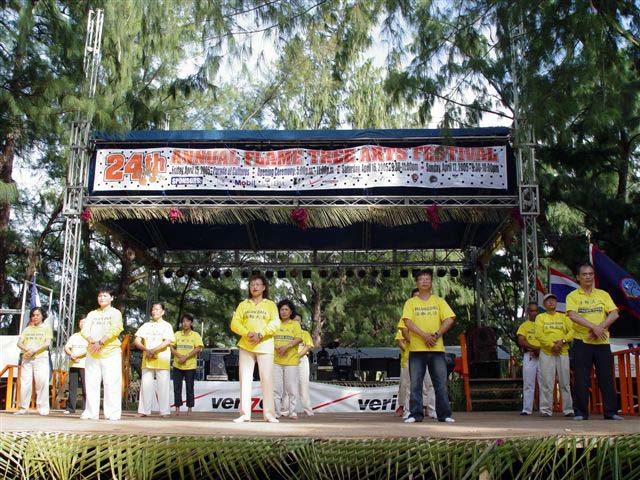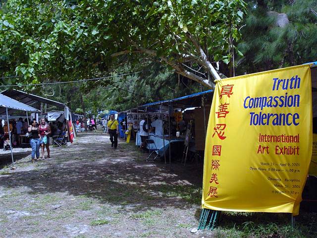 学员们向游客派发法轮功真象资料并向他们介绍法轮功及发生在大陆的迫害真象,并在展位边表演功法。同时举办的“真善忍国际美展”更吸引了很多人来了解真象。大会每天安排法轮功学员表演一场舞蹈和功法演示。学员们的精彩演出,博得全场来自世界各地的游客及当地居民的热烈掌声。
