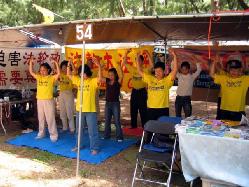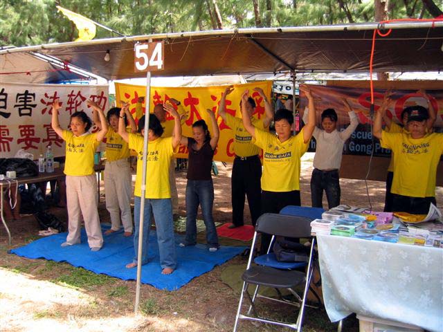 【明慧网2005年4月20日】塞班岛一年一度的火树节,于2005年4月15日到17日举行,台湾法轮功学员一行十一人前往参与该地学员的洪法活动。在密克罗海滩旁的大会场,塞班法轮功学员租了五个摊位,不仅最靠近舞台,也是所有参展单位中规模最大的。