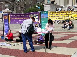 ![]() 在哥伦比亚大学校园内举办反酷刑展 | ![]() 哥伦比亚大学生在支持反迫害的请愿信上签名 |
