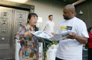 学员刚刚展开揭露酷刑的图片、纪念的花圈,立刻吸引了路人的视线。一位中年男士走过来,静静的观看酷刑图片。一位学员迎上去,给他一份真象资料,他开始询问起来,为什么会有酷刑?在哪儿发生?什么是法轮功等等。学员开始向他讲真象,当学员讲完之后,他立刻说:我想多了解法轮功,什么地方可以有机会修炼法轮功。