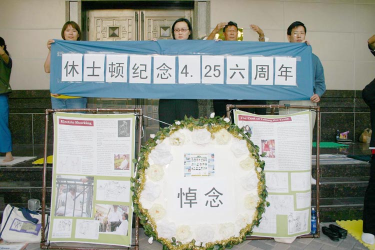 1999年4月25日和平上访至今已有六周年,2005年4月19日傍晚六点至九点,休士顿法轮功学员在中领馆前举行和平请愿,以此来纪念这个特殊的日子。在中领馆前,有纪念的花圈,揭露酷刑的图片,横幅等等,还有在夜晚中闪亮的烛光,学员静静的炼功、发正念,小弟子也加入了这个行列。路过的汽车中,有时候可见到一些人在拍摄,他们留下了这难忘特殊的情景。