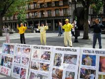 为纪念“4.25”万人和平上访六周年,西班牙法轮功学员在著名古都托莱多市中心莎戈多贝尔广场举办法轮功真象图片展。