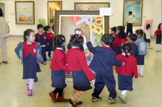 从美术展开馆的第一天起,就有许多职员和市民来参观。有好几个幼儿园还组织小朋友们集体来观展,从而了解了中共江氏集团镇压法轮功的真象。特别是临近的一所小学的学生们利用自习时间来到展览厅,他们的班主任老师还留了作业,写展览的观后感。学员向孩子们介绍了法轮功,功法给孩子们留下了深刻的印象。