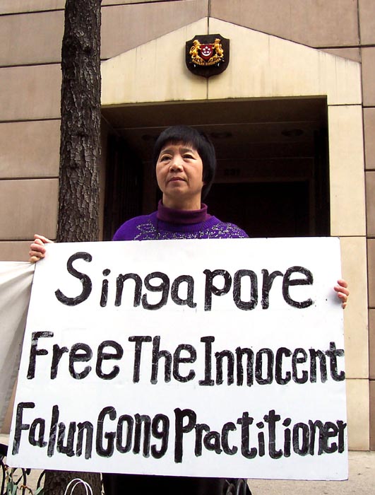 纽约法轮功学员吁新加坡当局勿充当中共帮凶(图)