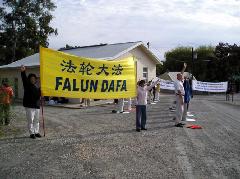 上海市市长率领50人组成的上海代表团访问美国休斯顿时,休斯顿法轮功学员面对代表团发出“请与我们共同制止对法轮功的迫害”的心声。