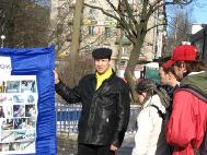 在我的学校有一个俱乐部名字为“给孩子自由”,我认为这是一个很好的主题,就争取他们和我一起搞活动。我找到了俱乐部的负责同学,她认为这是一个非常重要的问题。我也找到了中国学生协会俱乐部的负责同学,对他们讲清了法轮功真象。他们也加入了“给孩子自由”的签名活动。我也与主持俱乐部的老师谈了话,给他们讲了真象。