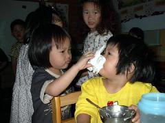![]() | ![]() 洪莲在学校中帮小妹妹擦鼻涕 |