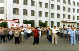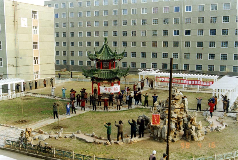 图片:1998年10月份,胜利油田大法弟子在钻井集体炼功