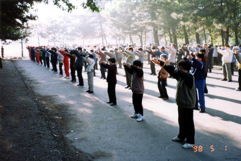 图片:98年大法弟子在辽宁凌源市政府门前集体炼功