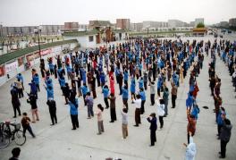 图片:99年前,长春大法弟子在文化广场集体炼功
