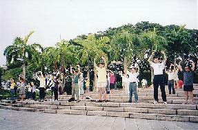 在1999年7月以前,新加坡全岛有几十个炼功点,他们分布在政府组屋(HDB)楼区域内、公园、海滨、麦里芝水库等地。所有的户外炼功从来都没有被警察监视与调查过。在这些炼功点上,学员经常向感兴趣的公众提供免费的教功。他们可以挂上“法轮修炼大法,免费教功”等字样的横幅及散发免费的法轮功介绍材料。所有这些活动,包括几百人的集体炼功均不需要当局的许可与批准。这个自由的环境一直延续到1999年7月。