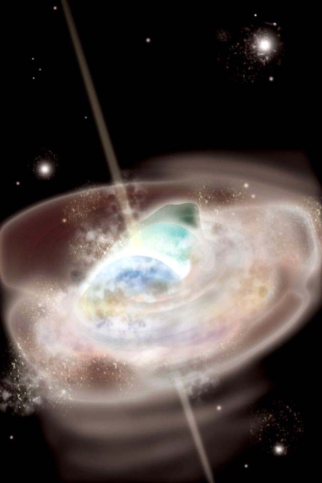 美国航空航天局(NASA)戈达德(Goddard)空间飞行中心的尼尔•戈勒尔斯说:在高能伽马射线爆发后,紧接着出现余晖,这很可能预示着二个密实的中子星相撞诞生一个低密度的黑洞。