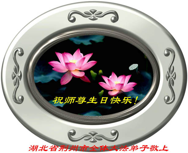 在伟大的师尊五十四岁华诞来临之际,在法轮大法洪传十三周年之际,和世界法轮大法日到来之际,湖北省荆州市全体大法弟子向慈悲伟大的师尊致以最崇高的敬意: