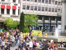 二零零五年五月十四日星期六下午,比利时法轮功学员及部份荷兰和瑞士学员在比利时首都布鲁塞尔市中心的LA MONNAIE广场举行活动,热烈庆祝第六届世界法轮大法日暨师父传法十三周年,并恭贺师父生日快乐。