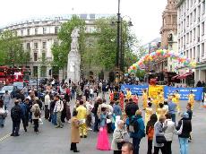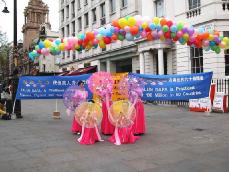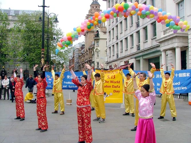 【明慧网2005年5月16日】英国大法弟子2005年5月14日在伦敦市中心举办了庆贺第六届世界法轮大法日的活动。
