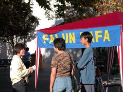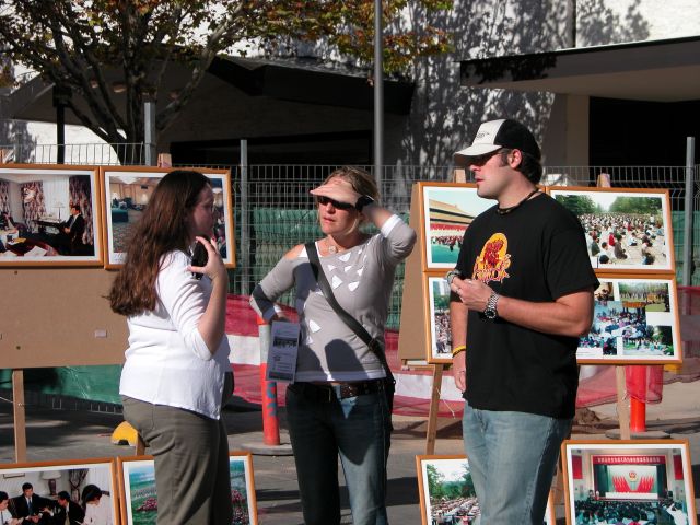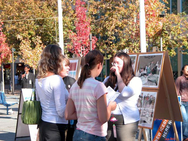 展览过程中,学员给许多人介绍法轮大法自1992年以来的洪传和在中国所受到的迫害。观看展览的人们有的来自台湾、香港和加拿大,得以了解法轮功。有些年轻人在看了展览,了解到法轮功真象和在中国所受迫害之后,感动得流下了眼泪。